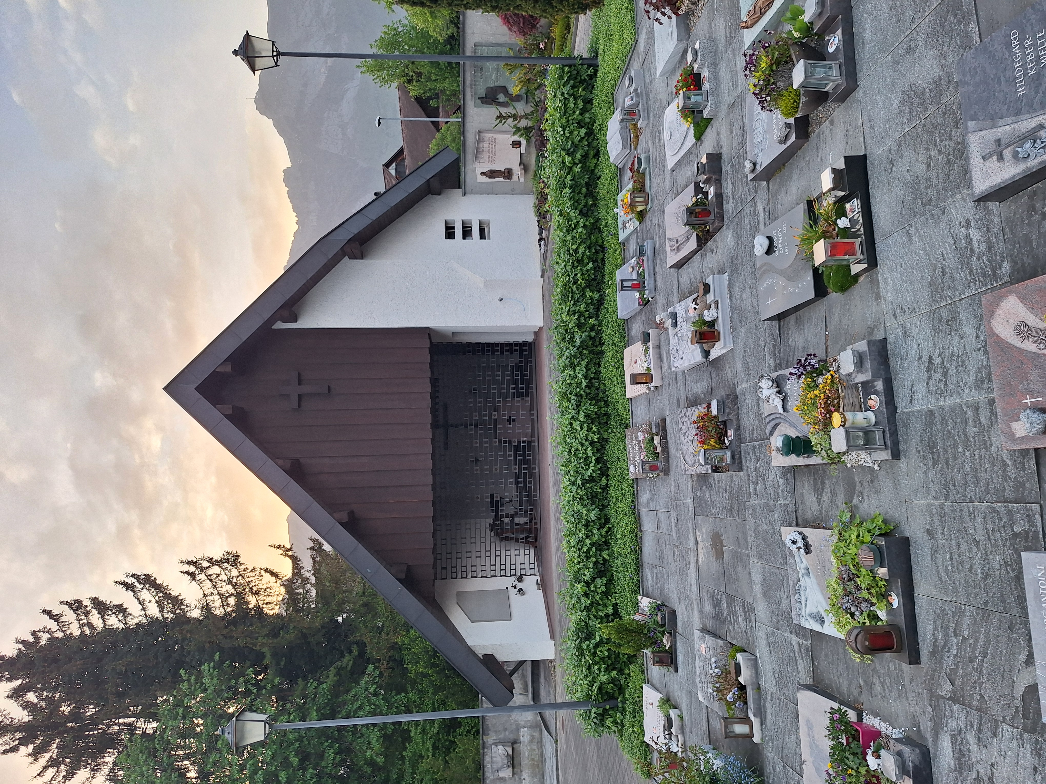 | Bis zur Errichtung einer selbständigen Kuratie im Jahr 1854 fanden die Verstorbenen der Gemeinde Ruggell auf dem Friedhof von Bendern ihre letzte Ruhestätte. Im selben Jahr wurde der erste Verstorbene auf dem Friedhof im ehemaligen Baumgarten des verstorbenen Mang Walch bestattet. 1964 kam die Anlegung der ersten Familiengräber; 1974/75 Friedhofserweiterung, Erstellung von Urnennischen und Bau einer Totenkapelle. | ![]() |