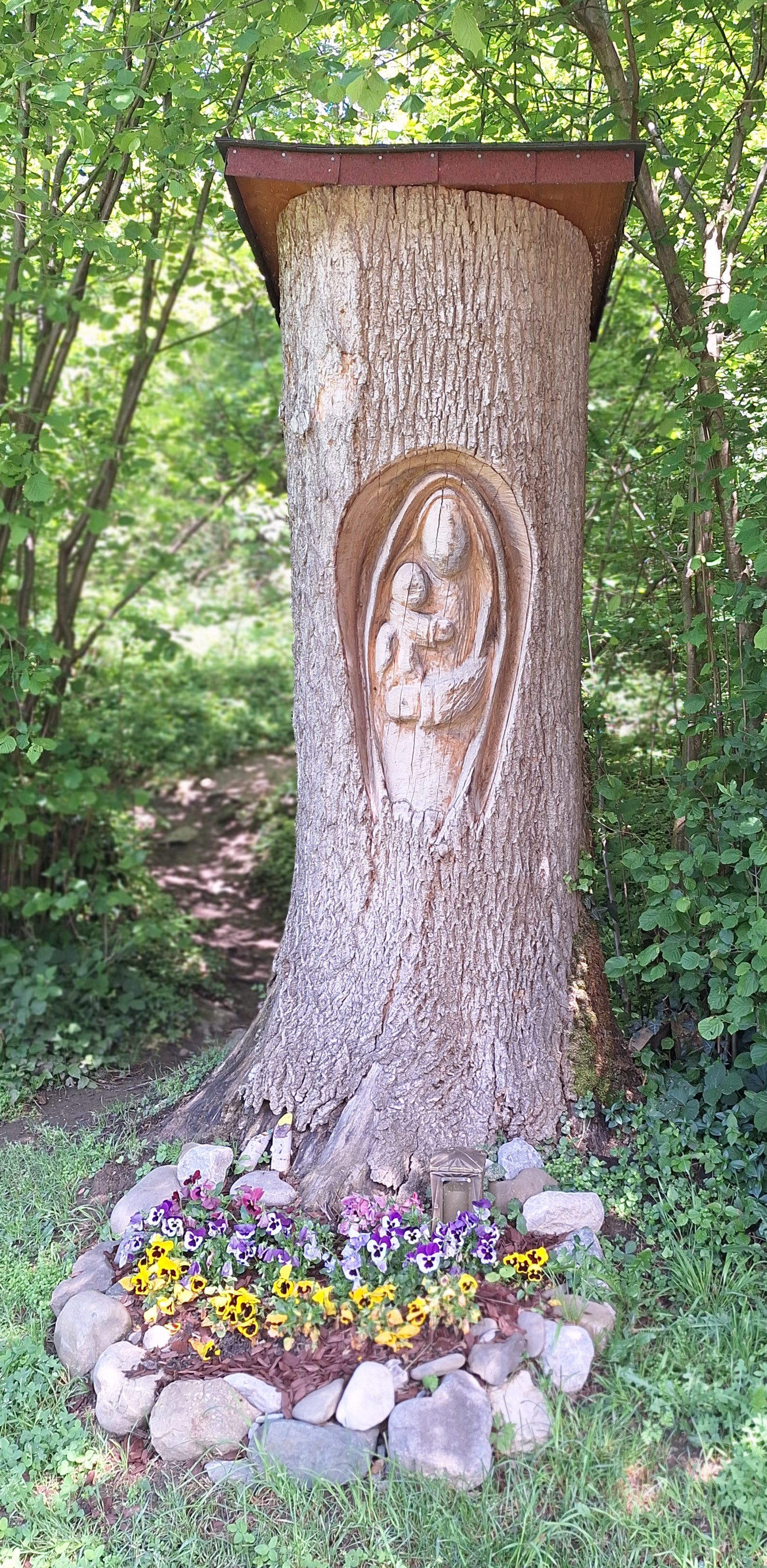 In der Studa ist auch eine in einen Baumstamm geschnitzte Muttergottes zu bestaunen, die bei der Feldmesse an Christi Himmelfahrt am 25. Mai 2017 gesegnet wurde. |
