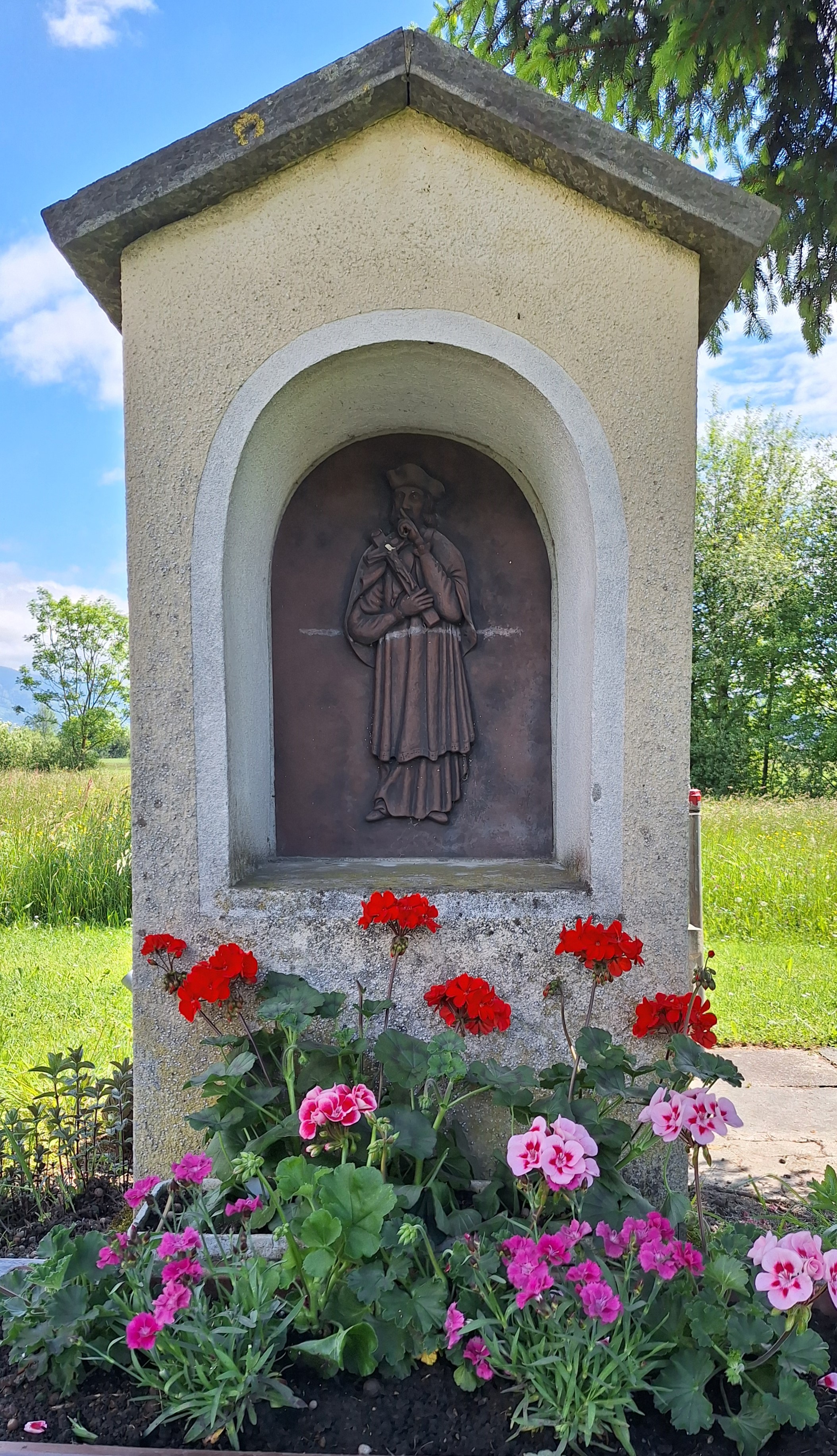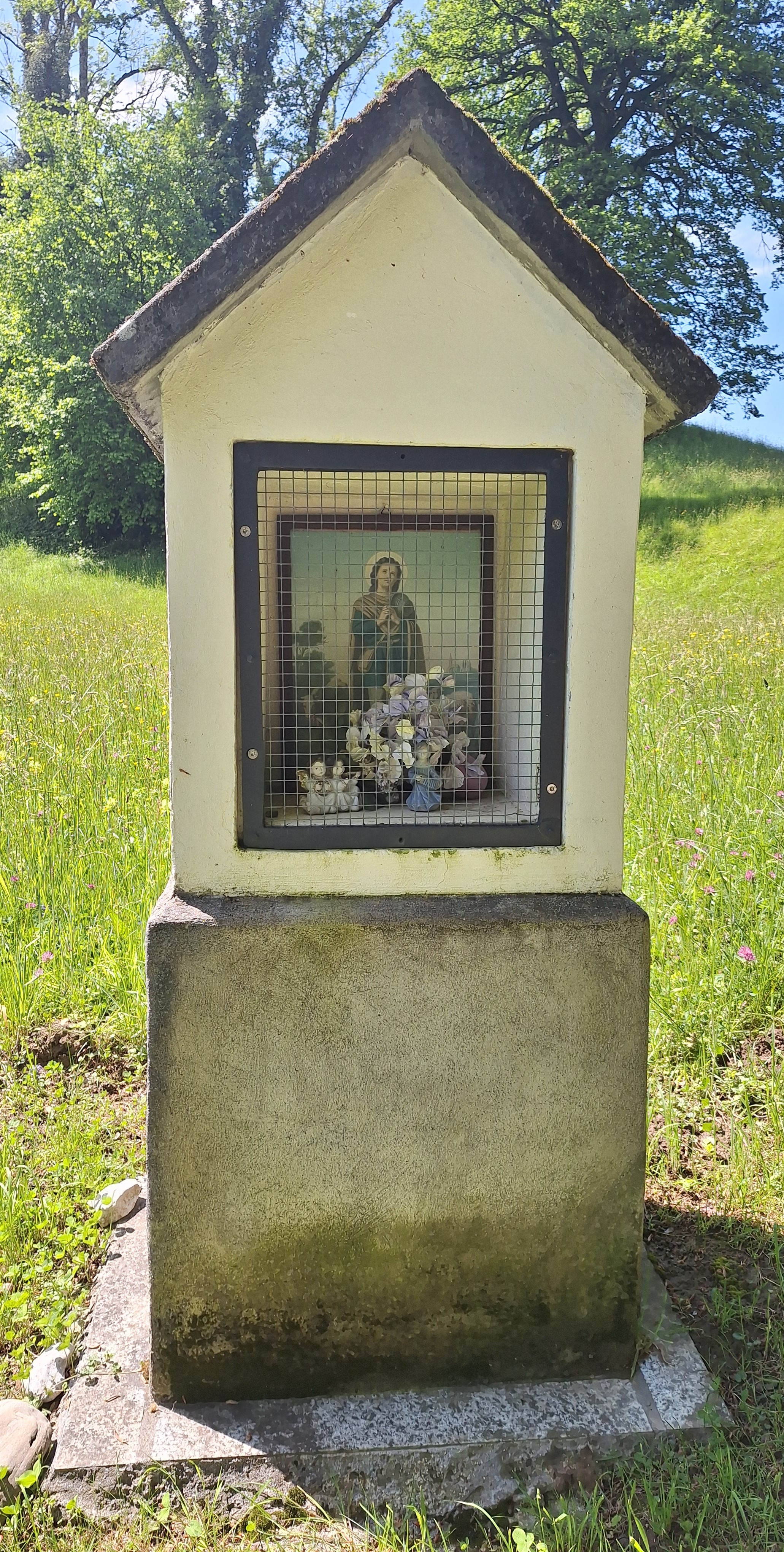 Das Bildstöckchen an der Giessastrasse hat einen ehemaligen Brunnen zur Grundlage und wurde 1999 errichtet. In der Nische steht eine Statue des hl. Florian, Schutzpatron gegen Feuersbrunst. |